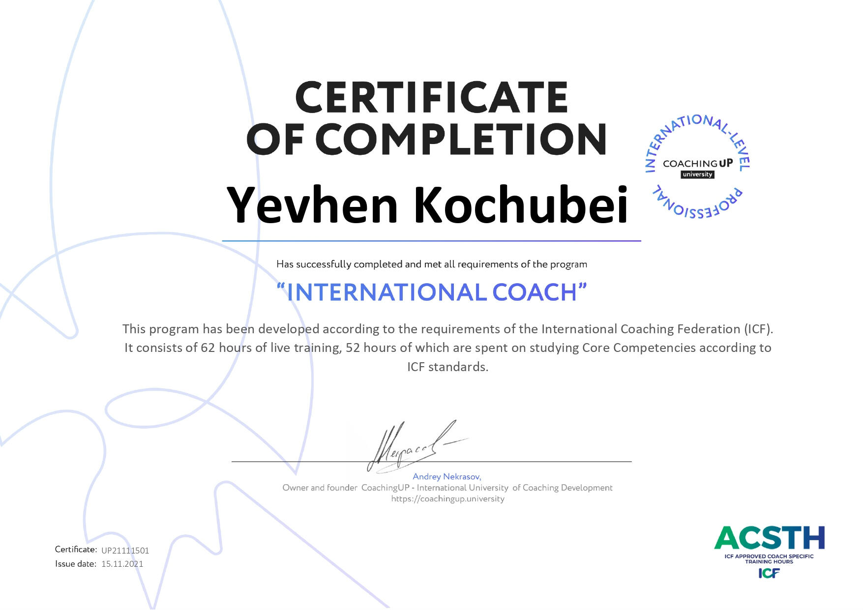 Коучинг за стандартами ICF: програма ACSTH.