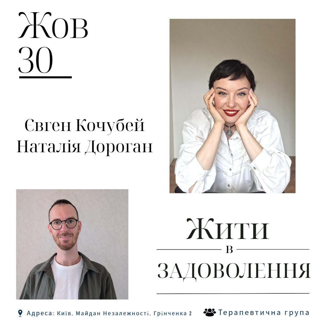 Ми запрошуємо тебе в нашу терапевтичну групу : "Жити в задоволення", де раз на два тижні протягом трьох годин можна зупинитися,